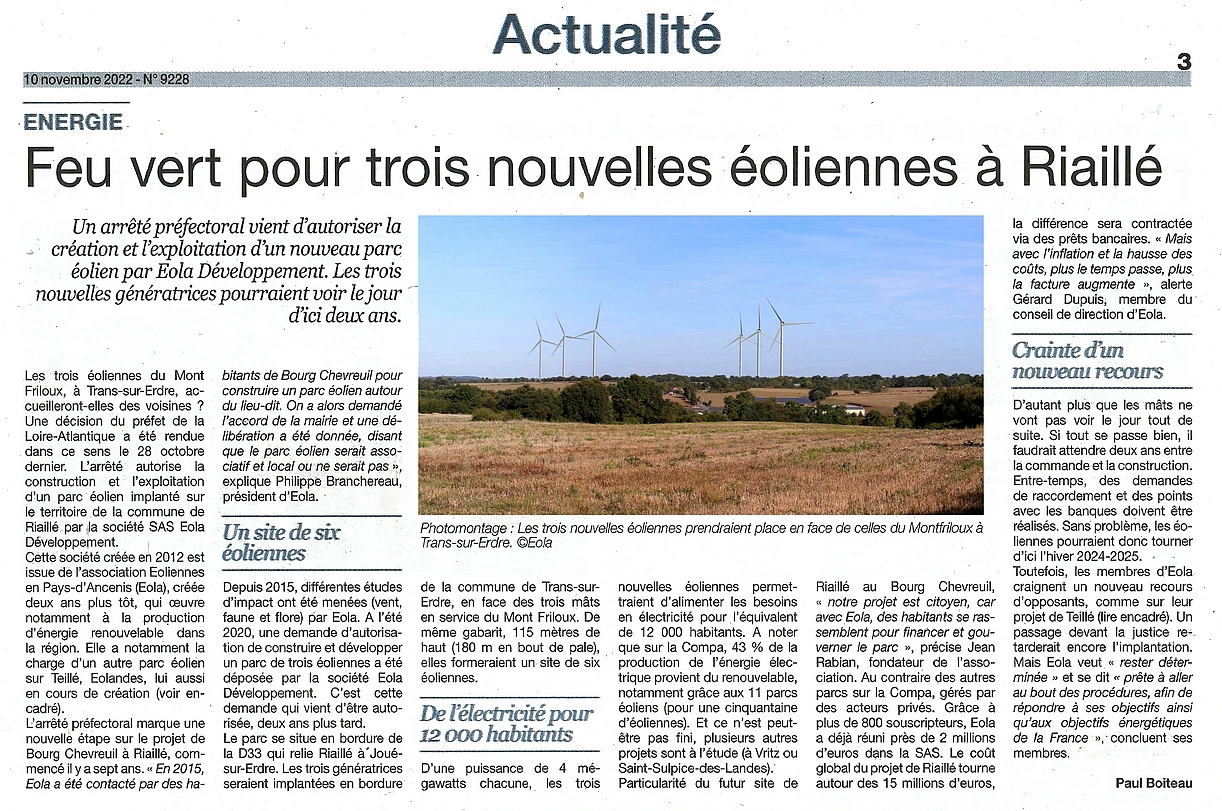 et l'encadré qui fait le point sur le 1er projet Eolandes Teillé